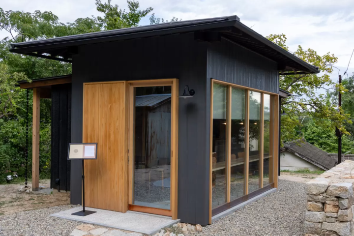 这家店名叫“harel CAFE+”。用烧焦的杉木板包起来的棚屋,坐落在曾经的凉亭(日式传统休息区)的位置,散发着现代茶馆的气息。前几天,我去参观了他们开业前的准备工作。