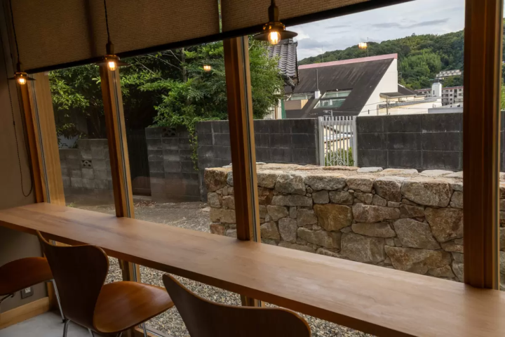 店内采用裸露的混凝土结构,南向的大窗户旁设有吧台座位,左侧设有桌椅座位,是让您暂时忘却熙熙攘攘的本町通游客的喧嚣的世外桃源。