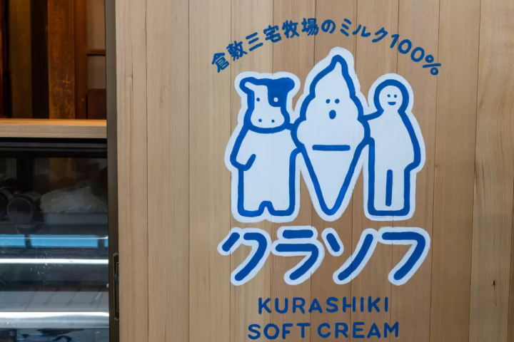 这是第一家常设商店,供应使用三宅农场的新鲜生牛奶制成的软冰淇淋,该农场还经营仓敷奶酪工厂 Harupal 。
