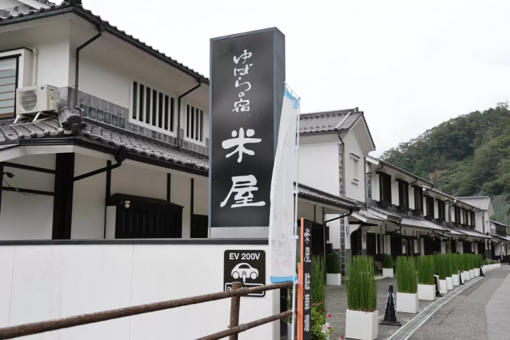 这家旅馆外观宛如驿站町,白色墙壁、格子窗和海苔墙(日式传统墙面风格)相映成趣。旅馆位于美作街道沿线,距离温泉街中心稍远。旅馆内设有露天浴池、半露天浴池、中浴池、大浴池、包租浴池和日间浴池。