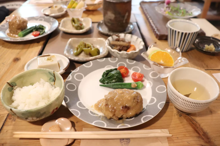 Along with the main dish, many small side dishes are brought out. I had just eaten the soba noodles, but the rice was also served in a bowl, so it was quite filling! Each dish uses seasonal ingredients and vegetables, and is extremely nutritious. It also comes with fruit, so you might think that's the end, but there's more to come.