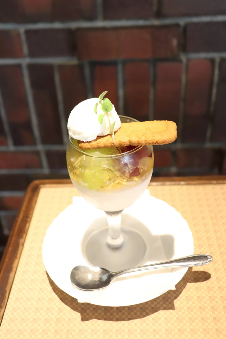 They also have a regular-sized parfait filled with fruits from Okayama Prefecture, but on this day I had a slightly smaller parfait called the "Grape Verrine" (850 yen). Verrine (a French word for dessert served in a glass container) is a small parfait, and the portion is surprisingly small, which is nice! It's also recommended as a dessert after lunch. It's filled with plenty of Shine Muscat grapes (a high-quality grape variety) from Okayama Prefecture, and the fresh cream is just the right amount of sweet. It's sold in limited quantities, and on this day it was the last one left. I'm looking forward to it as the menu changes depending on the seasonal fruits.