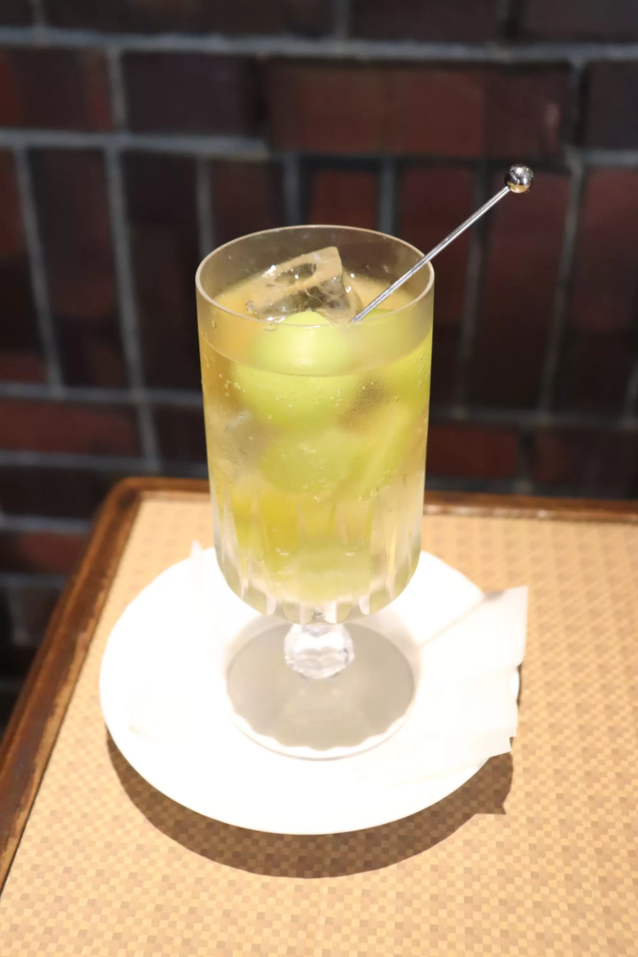 I found a rare soda! It's "Shine Muscat Soda" (780 yen) made with Shine Muscat juice from Okayama Prefecture. It's sweet and refreshing, and the Shine Muscat grapes make it a visually appealing drink. Be sure to try it when it's in season!