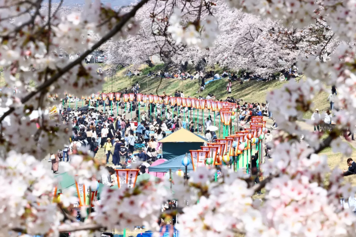 Spring in Okayama is the perfect season for a date, as the city and mountains are bathed in the pink of cherry blossoms. In the center of Okayama City , the Okayama Sakura Carnival is held on the Asahikawa riverbed east of Korakuen Garden. You can enjoy the 400m-long row of cherry blossom trees along with food stalls during the day, and at night, the lights are on, creating a fantastical atmosphere.