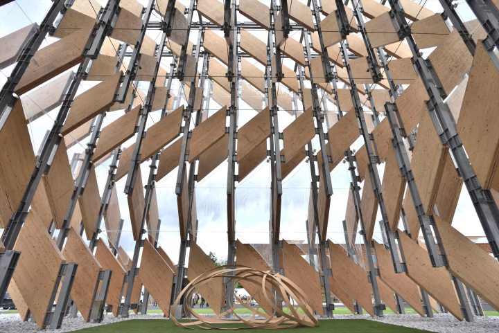 Located on the Hiruzen-kogen Heights in Maniwa City , " GREENable HIRUZEN" is an innovative structure that combines CLT panels and steel frames. The building was originally constructed as a temporary pavilion that could be moved to Harumi, Tokyo, but was dismantled and relocated to Maniwa City after the event. The main building is affectionately known as "Kaze no Ha" (Kaze no Ha Pavilion) and is open to the public as a permanent facility. You can also enter the interior of "Kaze no Ha Pavilion," so be sure to experience the architecture from the inside as well.
