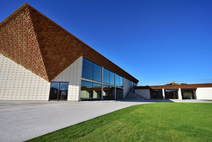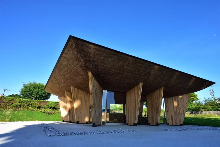 The entire vast grounds of "GREENable HIRUZEN" were designed by Kuma. In addition to "Kaze no Ha Pavilion," various buildings are scattered throughout the grounds, including a cycle center (bicycle rental facility), a tourist information center, and a museum.