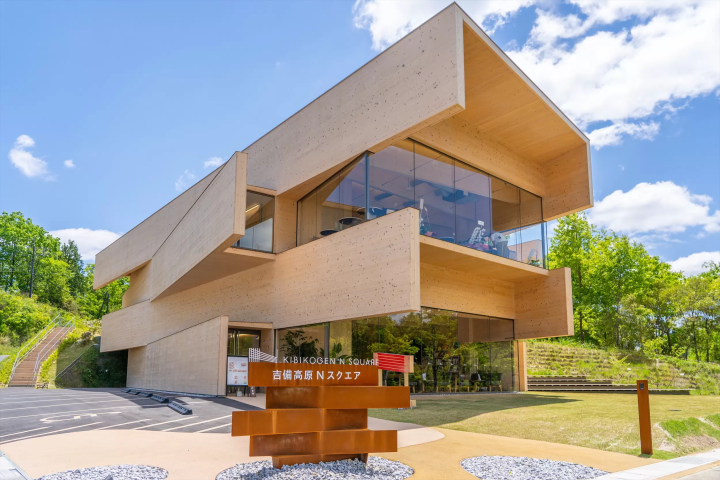 Kibichuo Town Town is located in the Chuo of Okayama Prefecture , on a Takaharu at an altitude of about 400 meters. N Square, located here, is a community interaction and revitalization facility centered around a coworking space and cafe. Like GREENable HIRUZEN's Kaze no Ha Pavilion Ha, this building uses CLT panels, of which Okayama Prefecture boasts the highest production volume in Japan.