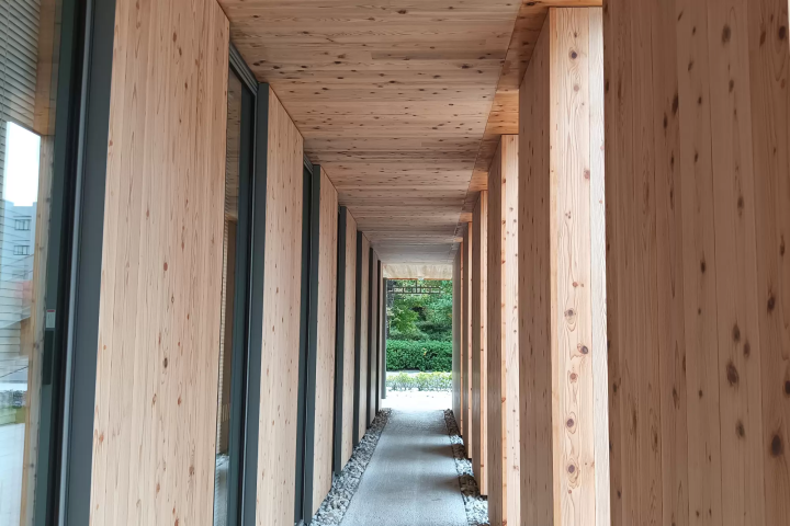 " GREENable HIRUZEN " in Maniwa City uses a wood panel material called CLT (Cross Laminated Timber). This CLT is made from Hinoki (Japanese Cypress) grown in Okayama Prefecture , Japan's number one Hinoki (Japanese Cypress) producing area, and it was this encounter with this material that led to the building being constructed in Okayama .