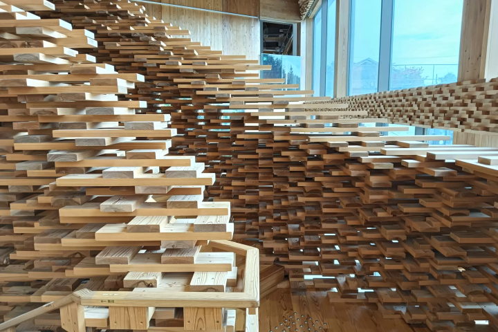 Kuma's attention to detail can be seen everywhere, even in the stairs and walls of the museum. When you enter the building, you are enveloped in the gentle scent and warmth of the wood. There is also a corner inside the museum that introduces Kuma's architecture, which will deepen your understanding of architecture.