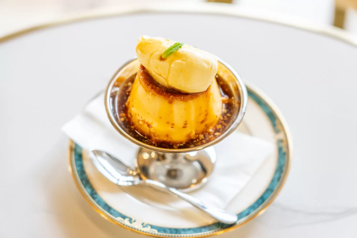 The homemade sweets made by the in-house pastry chef are also popular. The traditional firm pudding, which is an exquisite combination of bittersweet caramel and the sweetness of vanilla ice cream, is available in limited quantities.