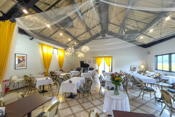 The interior of the cafe is more spacious than you'd imagine. With an industrial atmosphere reminiscent of a warehouse, and tables and chairs reminiscent of a French cafe, the space can accommodate over 100 people and is used for events such as live performances and concerts. Cafe weddings are also being planned for the future.