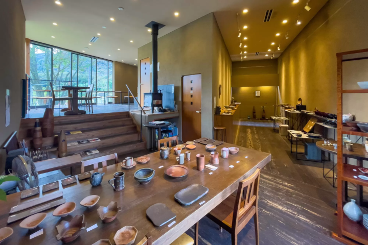 Solo exhibitions by artists of Bizen Pottery and other ceramics, glass, woodwork, dyeing, etc. are held every month. One of the pleasures of the shop is spending time looking at the works that convey the warmth of the makers while waiting for your ordered soba to be served.