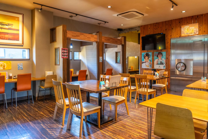 The facility is barrier-free, with a ramp to the entrance, wide sliding doors, a spacious toilet that can accommodate wheelchairs, and a diaper changing bed. It is also popular with customers with children who have been to the nearby Wakemaro Park.