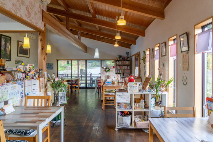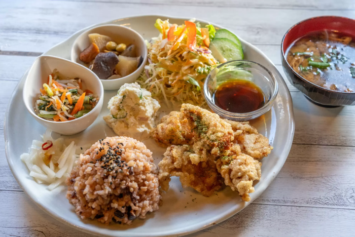 Opened in 2024, café de bouquet is a place that embodies the owner's desire to have fun. The daily lunch menu, which is garnished with plenty of home-grown and locally sourced vegetables, features one to three dishes from the following menu: hamburger steak, fried chicken, sauteed chicken, mixed fries, and taco rice (a Mexican-style rice dish).
