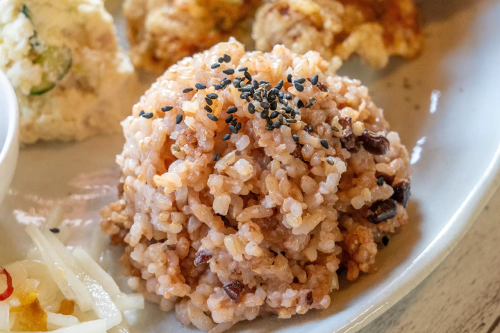 The enzyme brown rice, made by cooking brown rice (unrefined brown rice) with red beans and salt and letting it mature for several days, is characterized by its subtle sweetness and aroma, and is popular for its flavor and chewy texture. For lunch, you can choose between enzyme brown rice or white rice made with locally grown rice. The soy pulp salad (a healthy ingredient made from soybeans) seasoned with mayonnaise and French dressing is also a popular dish. Other side dishes, such as salads, simmered dishes, and stir-fries, are made with plenty of seasonal vegetables, either home-grown or grown by relatives, creating a plate that truly reflects the season. There is also a daily pasta menu, and a "kids' lunch" (650 yen) available exclusively for elementary school children and younger.