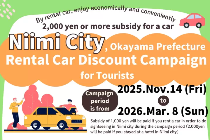 Okayama Prefecture Niimi City Rental Car Subsidy Campaign 2025/11/14~2026/3/8