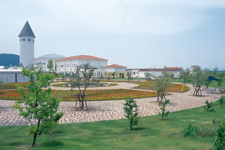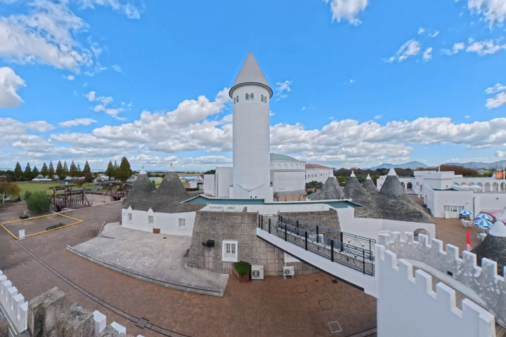 오카야마시 남부의 시골 풍경에 위치한 오카야마시 사우스 빌리지는 남유럽의 전원 풍경을 연상시키는 흰색 전망대가 특징인 체험형 농업 공원입니다.