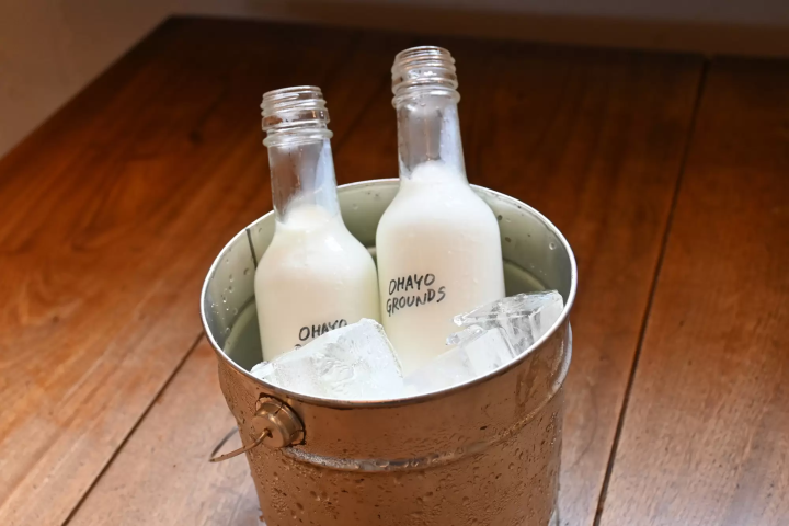 매장에는 나무 상자와 병들이 진열되어 있어 나이 드신 고객들에게는 추억을 떠올리게 하고, 젊은 고객들에게는 신선한 느낌을 선사합니다. 또한, 특별한 날을 맞아 넓은 잔디밭에서 "밀크"를 즐길 수 있도록 등불과 짚으로 만든 돗자리(전통 매트)를 대여해 드립니다.