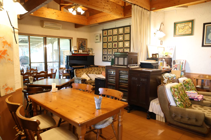 네네짱과 바론군, 두 마리 고양이가 카페 안과 밖을 자유롭게 돌아다닙니다. 조용하고 영리한 두 고양이는 가게의 마스코트입니다. 넓은 카페에는 고양이 제단(전시 스탠드)이 마련되어 있습니다.