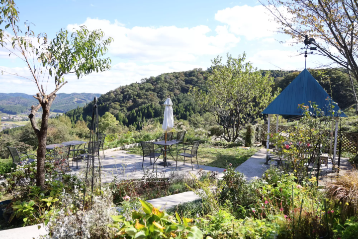 정원 테라스에서 탁 트인 자연의 전망을 감상해 보세요. 상쾌한 바람과 흔들리는 일본식 가을 풀인 팜파스그라스가 가을의 정취를 더합니다. 영국식 정원에서의 티타임은 분명 멋진 경험이 될 것입니다.