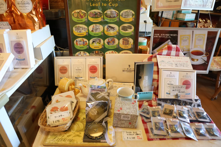 카페에서는 "ⓇEIJI MIYAMOTO" 브랜드 차도 구매하실 수 있습니다. 정원에서 마셔봤는데 너무 맛있어서 집에 가져가서 드시려고 몇 개 샀어요. 은은한 향이 은은하게 퍼지는 정말 맛있고 마시기 편한 차예요.